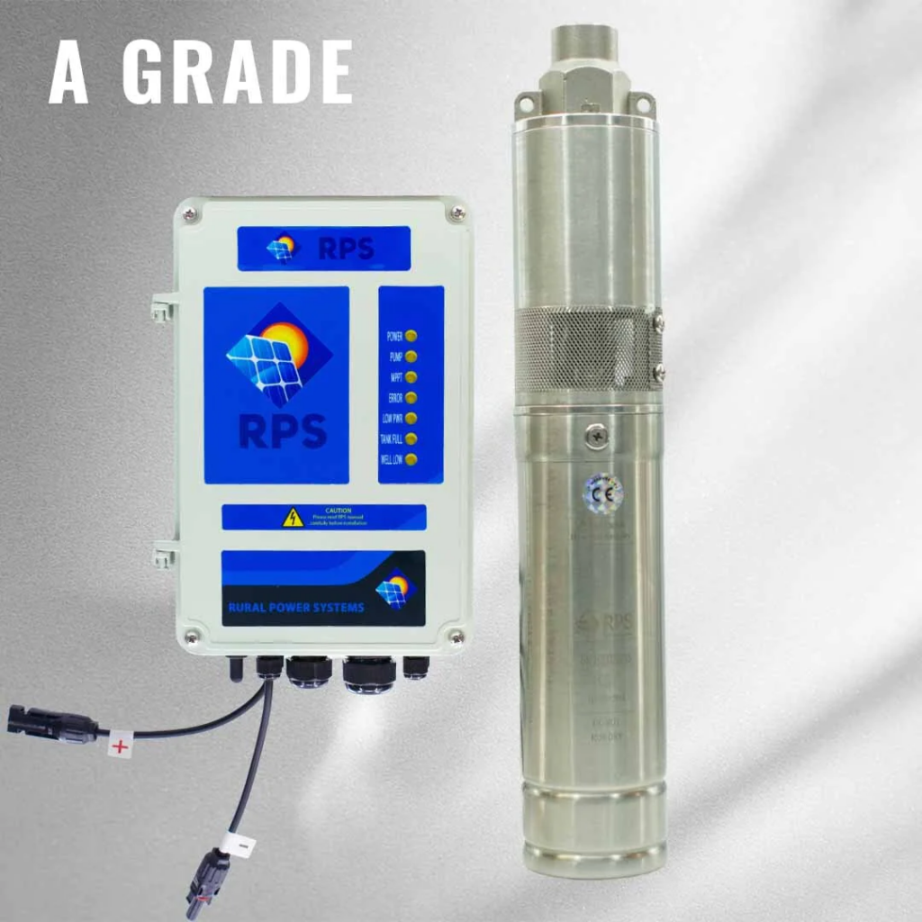 RPS’s wide range of solar water pumps suit just about every water pumping need from submersible to surface pumps up to 25HP. All of our pumps and components are Stainless Steel and made to last with a 2 Year Warranty and replaceable rotors for the life of your pump! Our kits come complete with Solar Panels and all components necessary for a full install: no ordering parts separately.
